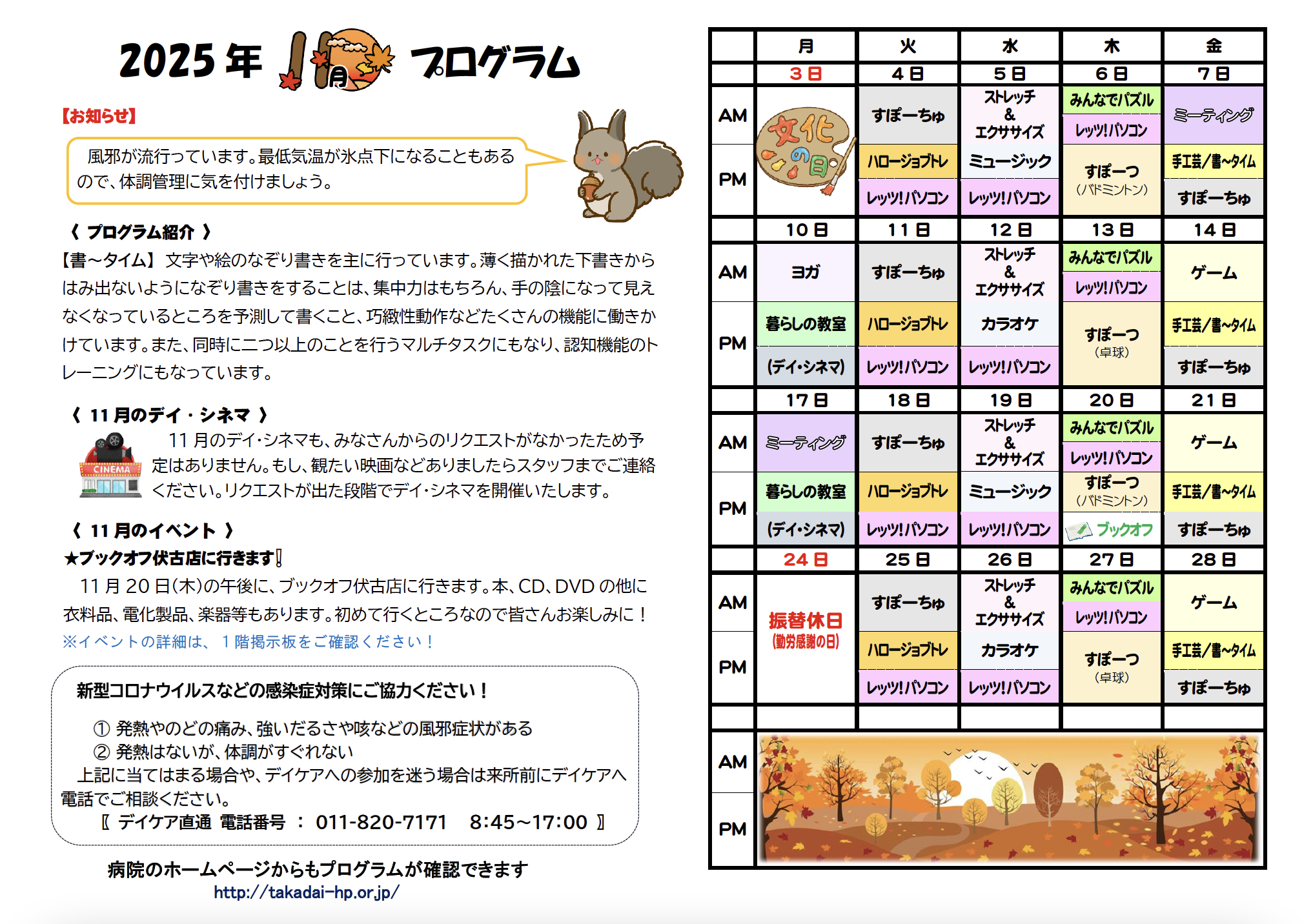 曜日や時間ごとにいろいろな活動プログラムがあります。利用する曜日・回数は、ご本人の希望や主治医の意見を聞いて、スタッフと相談しながら決まります。